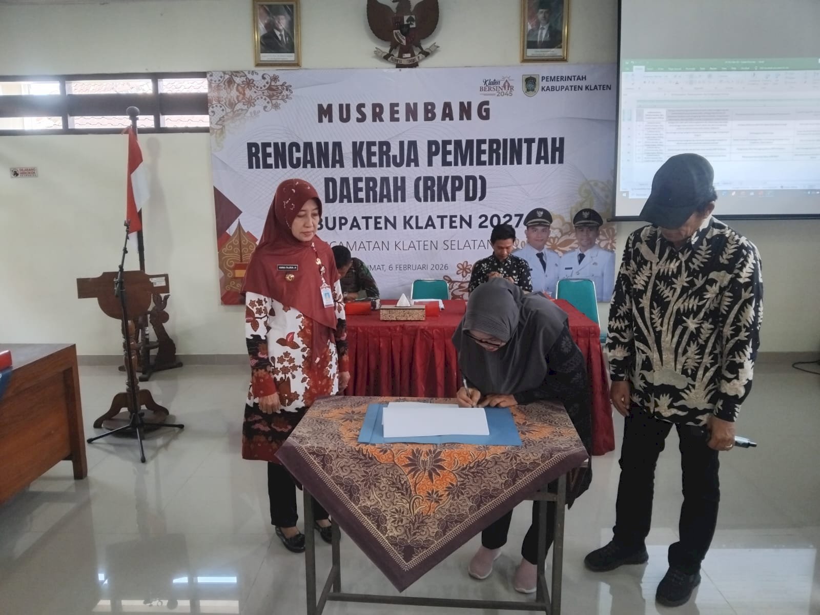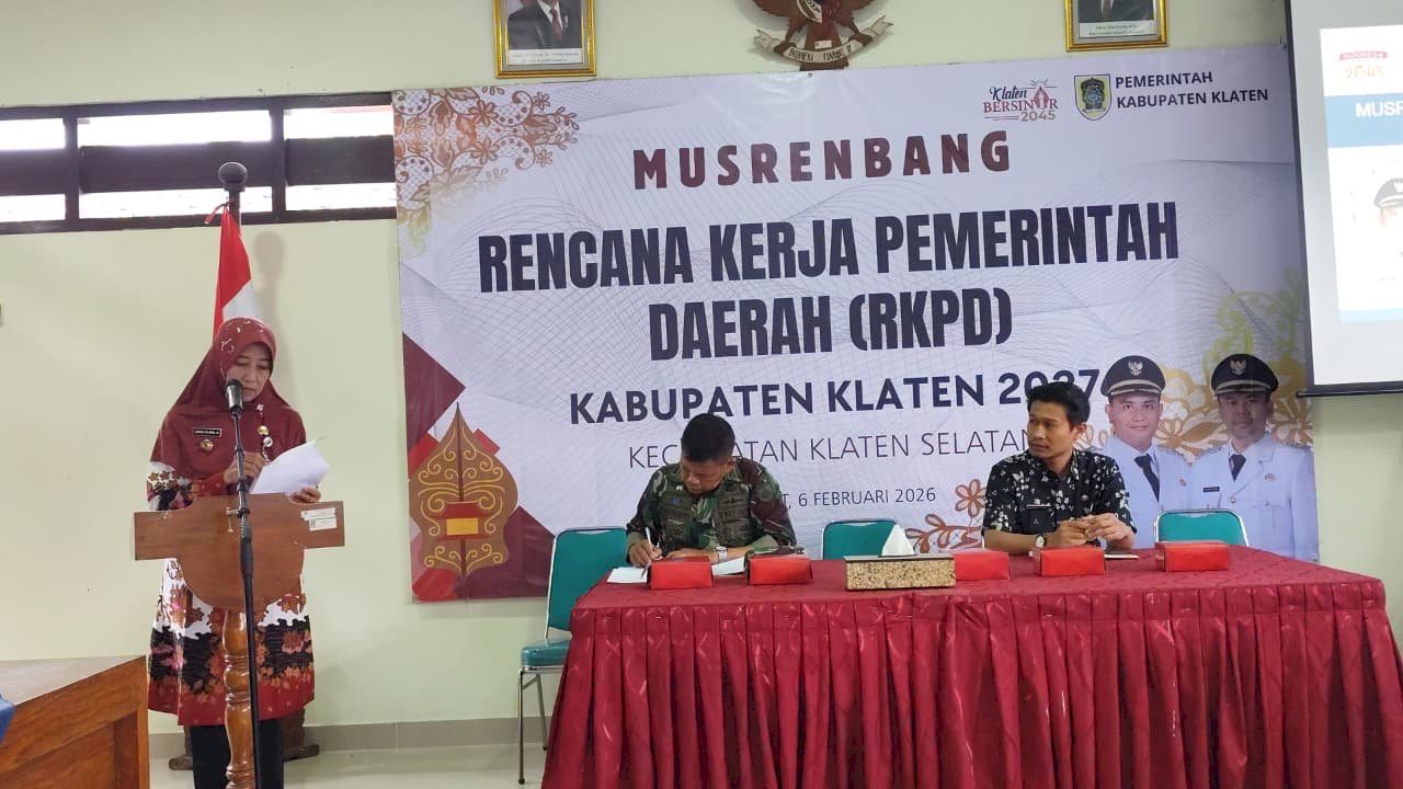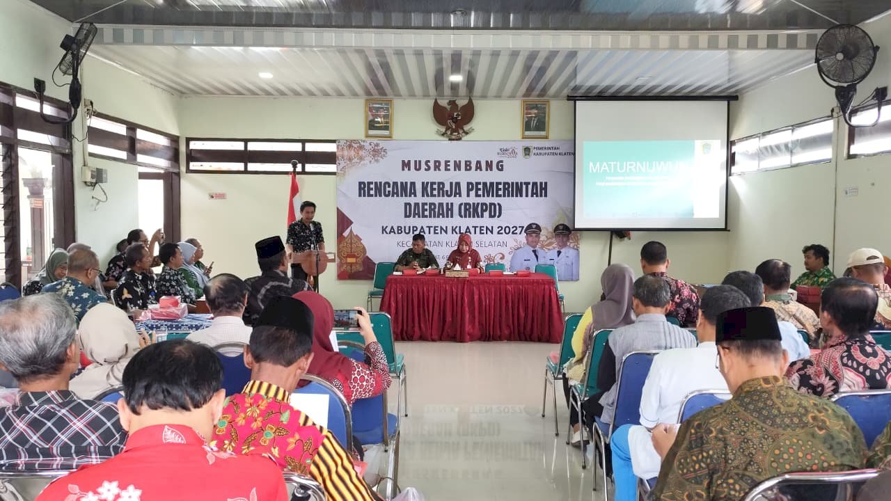 Klaten Selatan — Aula Kecamatan Klaten Selatan menjadi tempat pelaksanaan Musyawarah Perencanaan Pembangunan Kecamatan (Musrenbangkec) pada Jumat, 6 Februari 2026. Kegiatan ini dihadiri oleh unsur pemerintah kecamatan, pemerintah desa, perwakilan lembaga masyarakat, serta tamu undangan dari perangkat daerah Kabupaten Klaten.