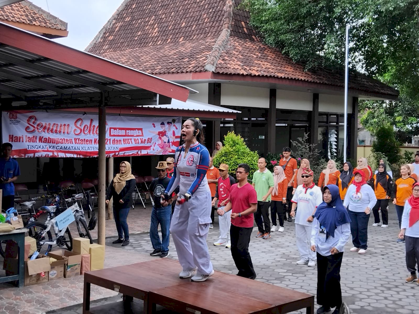 Klaten Selatan, Jumat, 29 Agustus 2025 – Kantor Kecamatan Klaten Selatan pagi ini, Jumat (29/8/2025) Sebagai puncak penutup dari rangkaian peringatan Hari Ulang Tahun (HUT) Republik Indonesia ke-80 dan Hari Jadi Kabupaten Klaten ke-221, diadakan kegiatan "Senam Sehat" yang meriah di halaman kantor setempat.